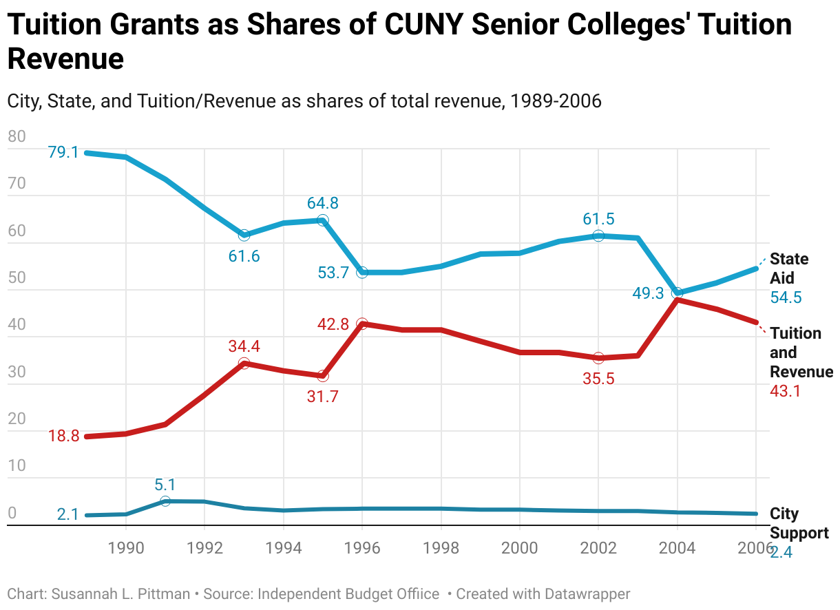 City, State, and Tuition/Revenue as shares of total revenue, 1989-2006