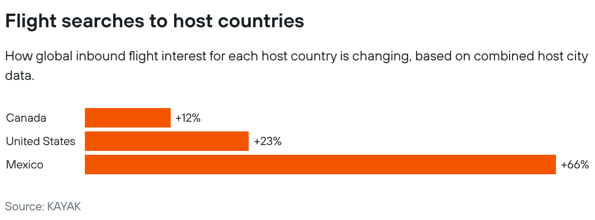 How global inbound flight interest for each host country is changing, based on combined host city data.