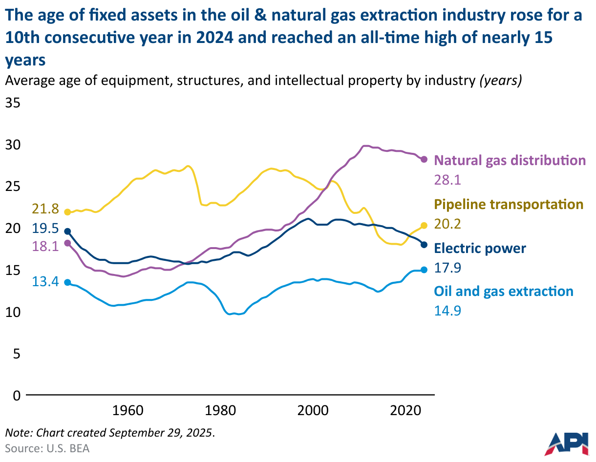 Average age of equipment, structures, and intellectual property by industry (years)