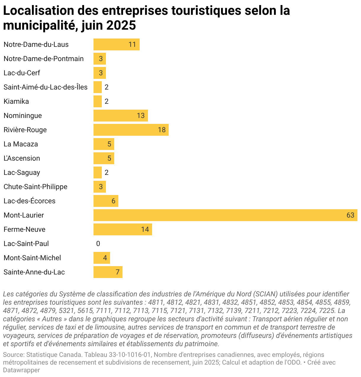 Localisation des entreprises touristiques selon la municipalité, juin 2025