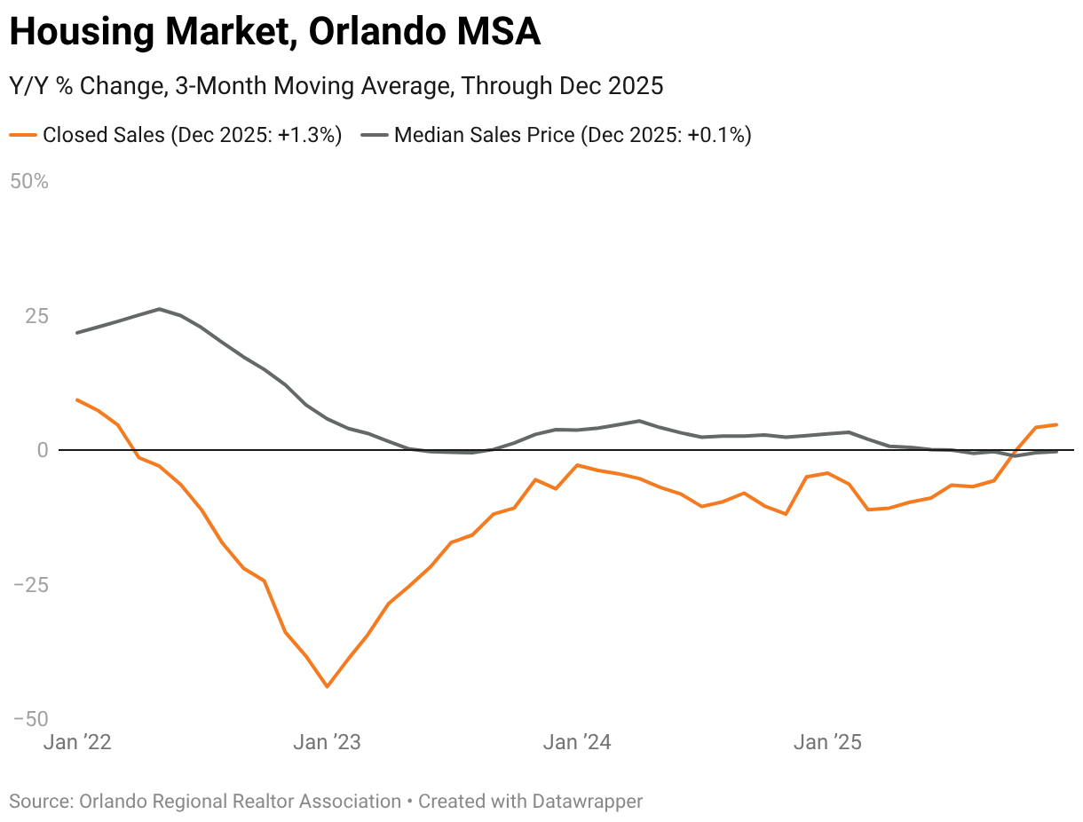 Y/Y % Change, 3-Month Moving Average, Through Dec 2025