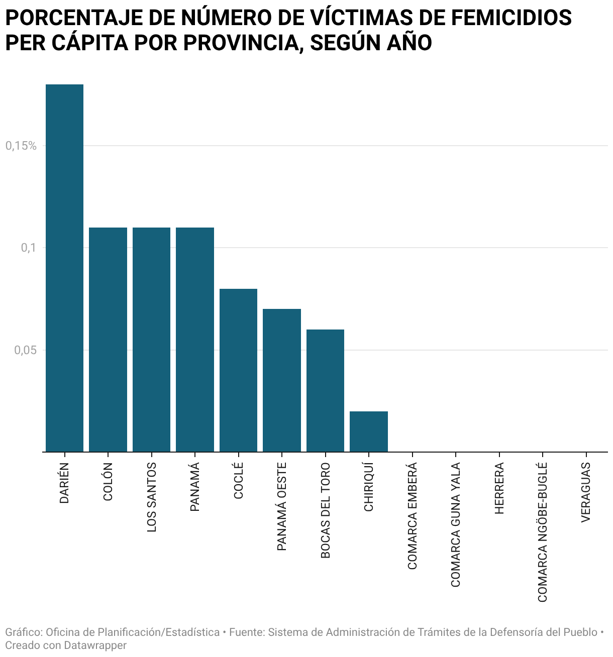 PORCENTAJE DE NÚMERO DE VÍCTIMAS DE FEMICIDIOS PER CÁPITA POR PROVINCIA, SEGÚN AÑO