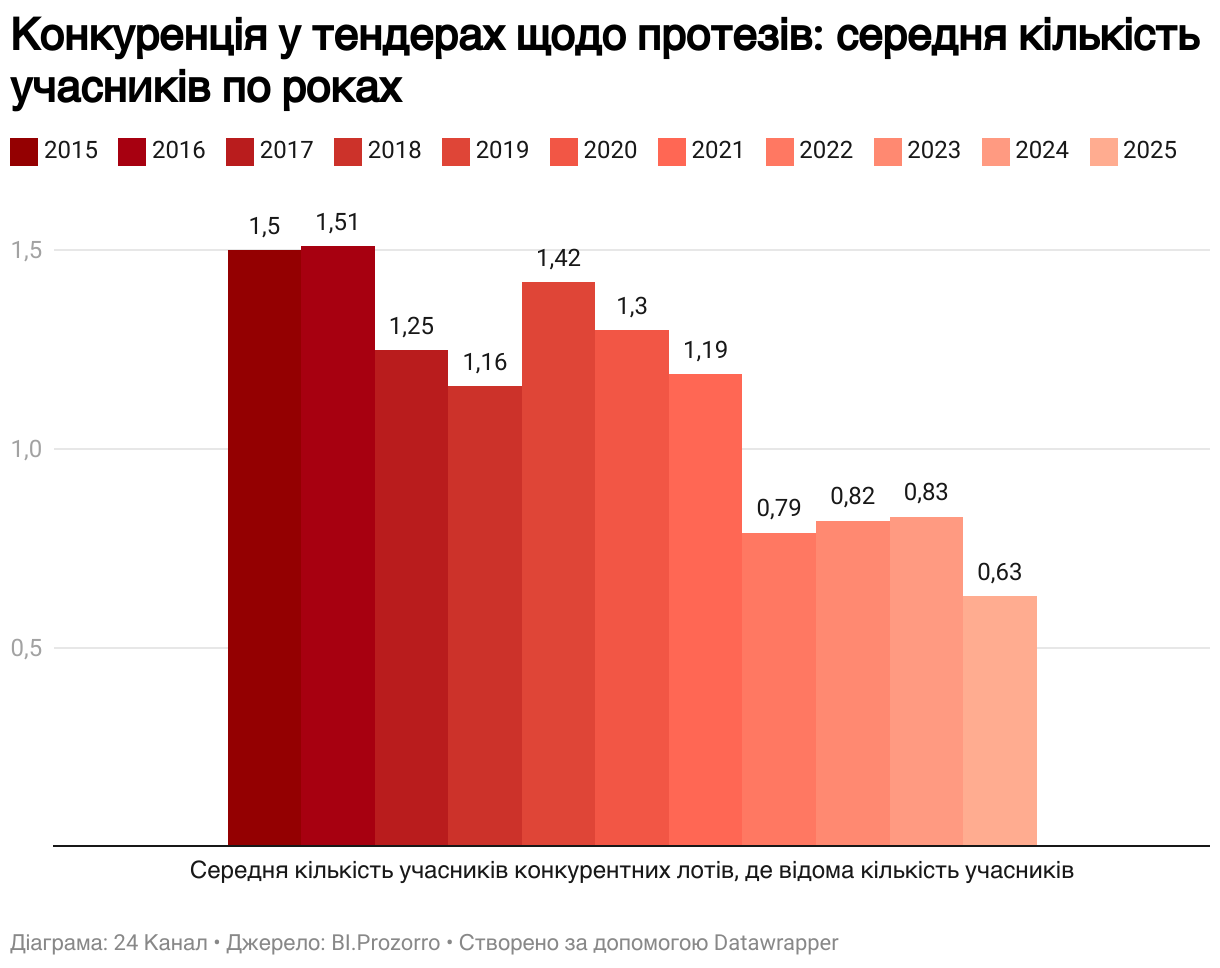 Конкуренція у тендерах щодо протезів: середня кількість учасників по роках