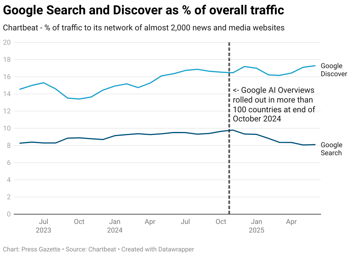 Chartbeat - % of traffic to its network of almost 2,000 news and media websites