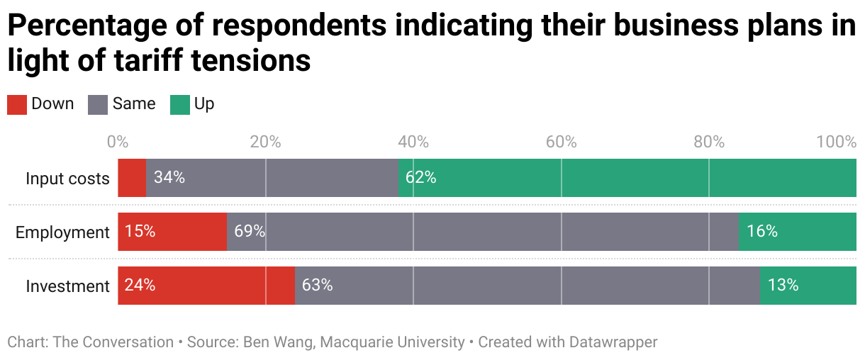 Percentage of respondents indicating their business plans in light of tariff tensions