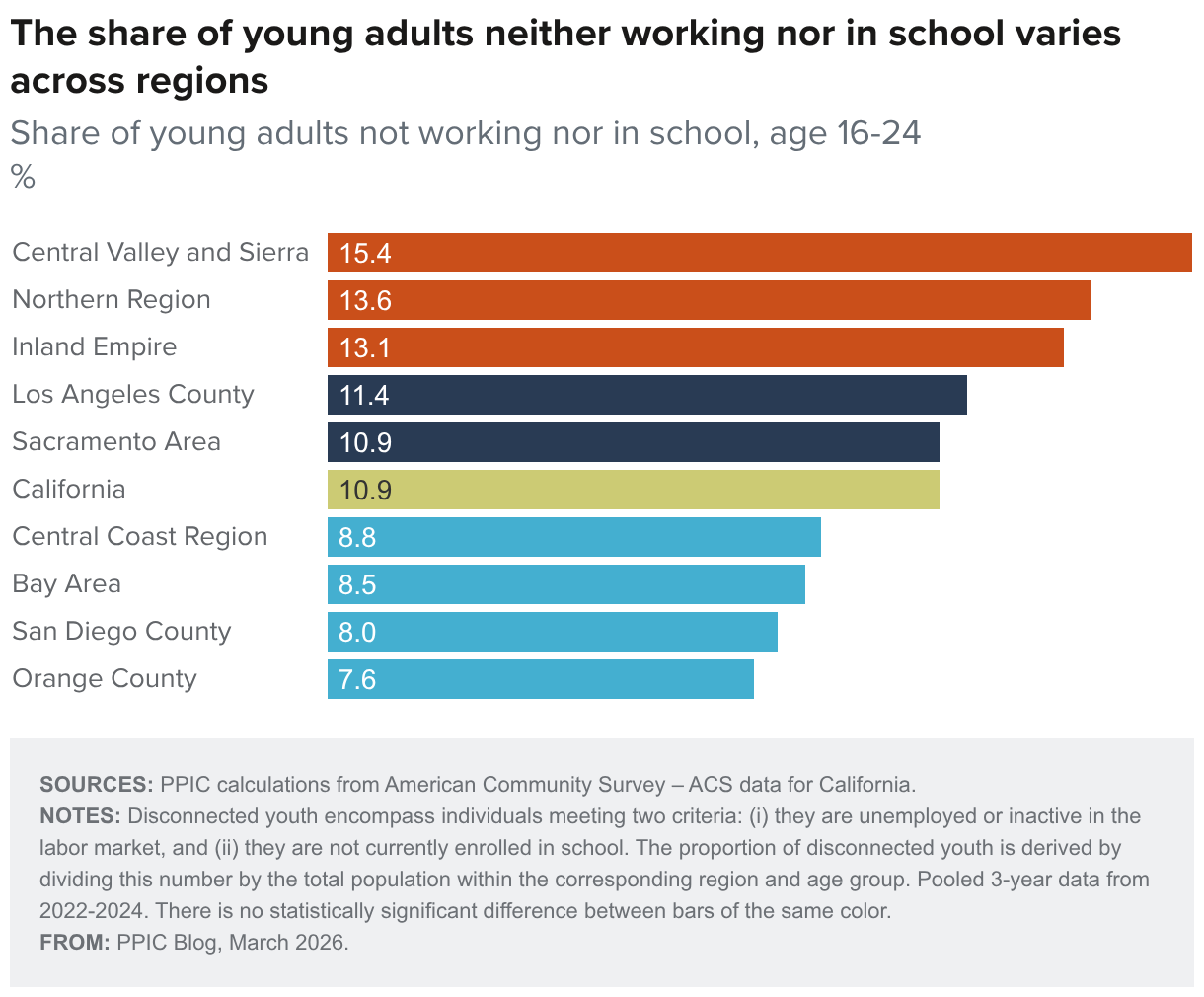 Share of young adults not working nor in school, age 16-24 %