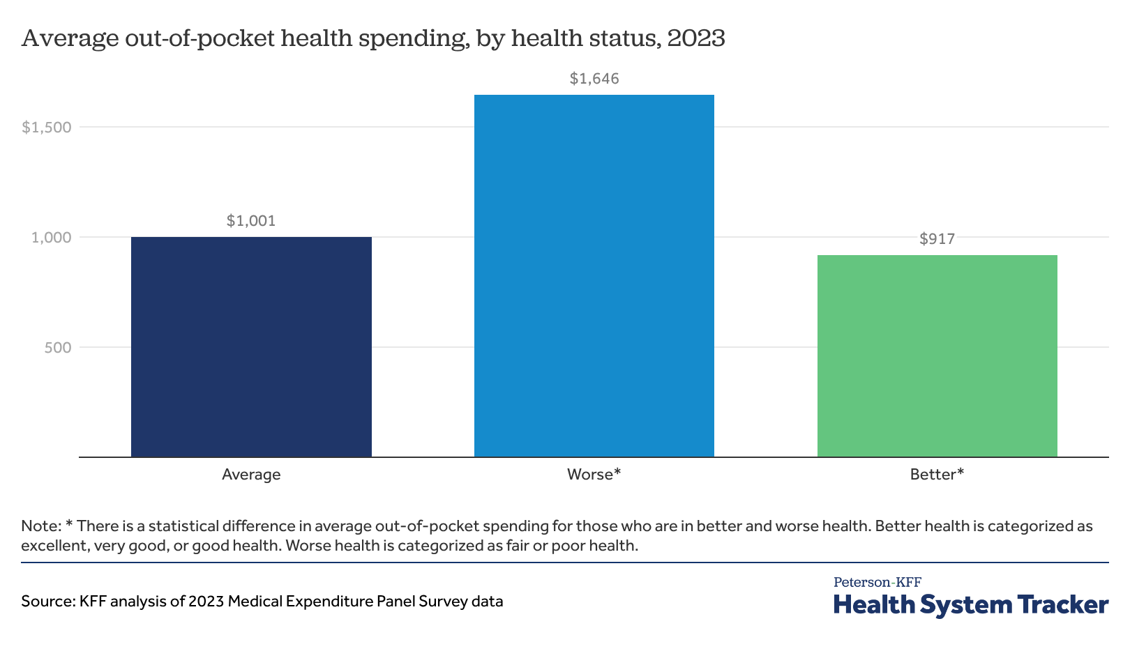 Average out-of-pocket health spending, by health status, 2023