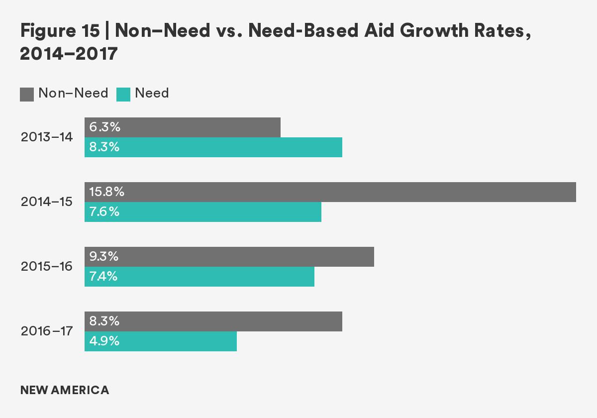 Figure 15 | Non–Need vs. Need-Based Aid Growth Rates, 2014–2017