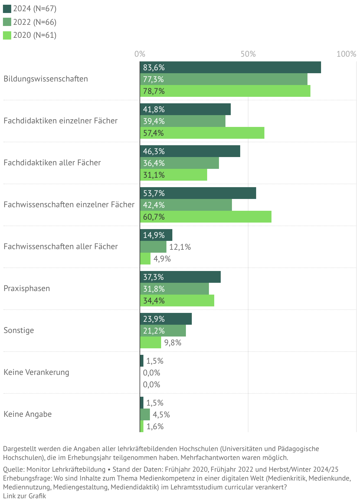 Dargestellt werden die Angaben aller lehrkräftebildenden Hochschulen (Universitäten und Pädagogische Hochschulen), die im Erhebungsjahr teilgenommen haben. Mehrfachantworten waren möglich.