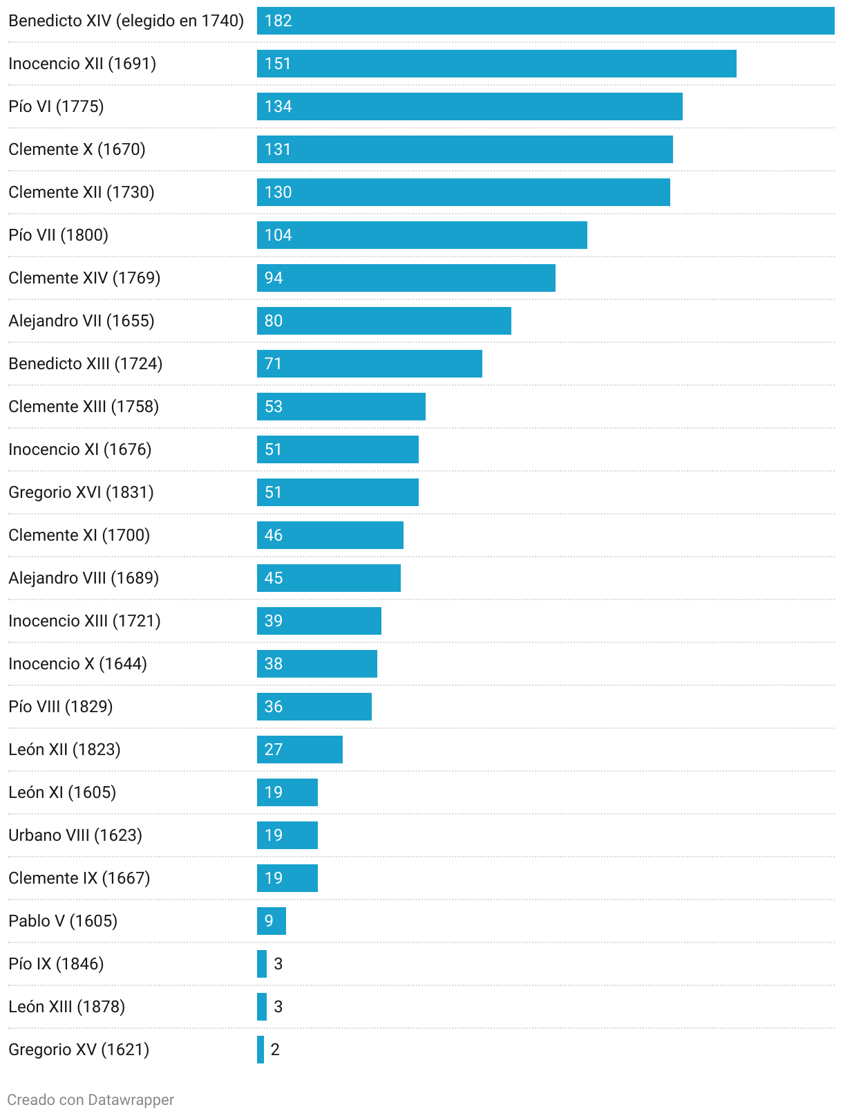 Desde 1600 hasta 1900, el cónclave promedio duraba alrededor de dos meses
