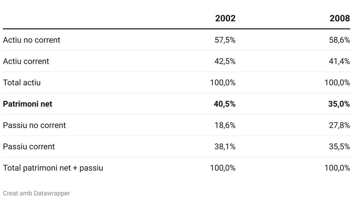 Figura 1. Evolució del balanç en percentatges de les empreses catalanes (2002-2008)