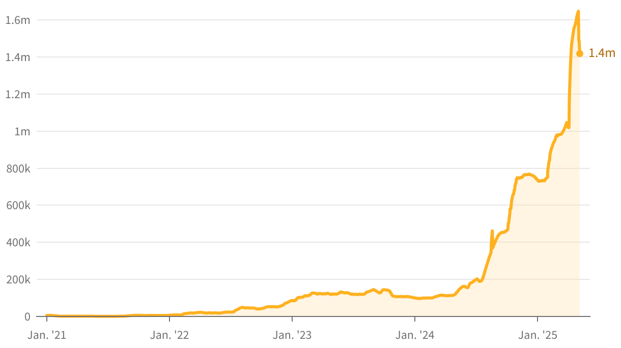 Spotify monthly listeners; Jan. 1, 2021 - May 7, 2025