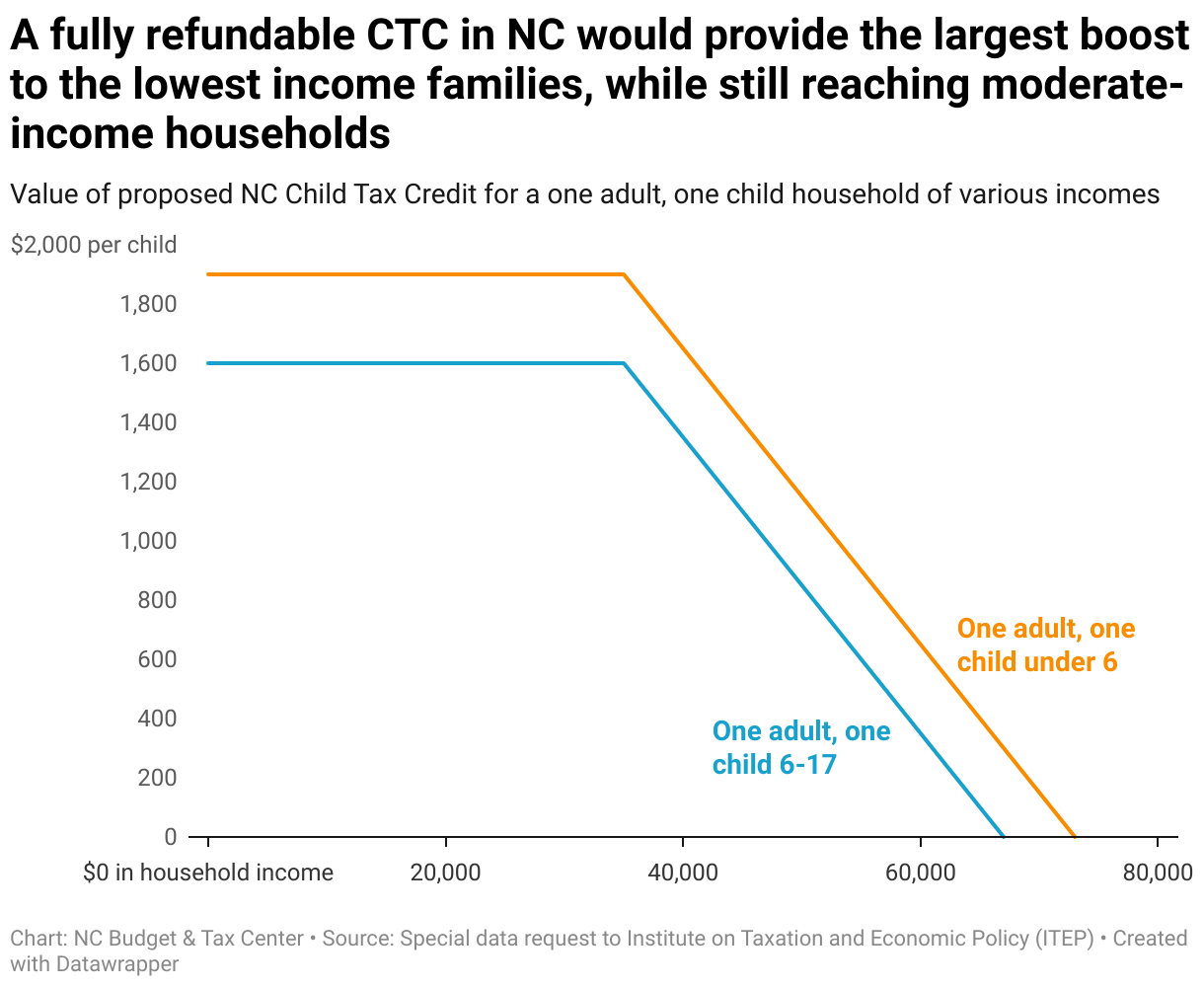 A fully refundable CTC in NC would provide the largest boost to the lowest income families, while still reaching moderate-income households