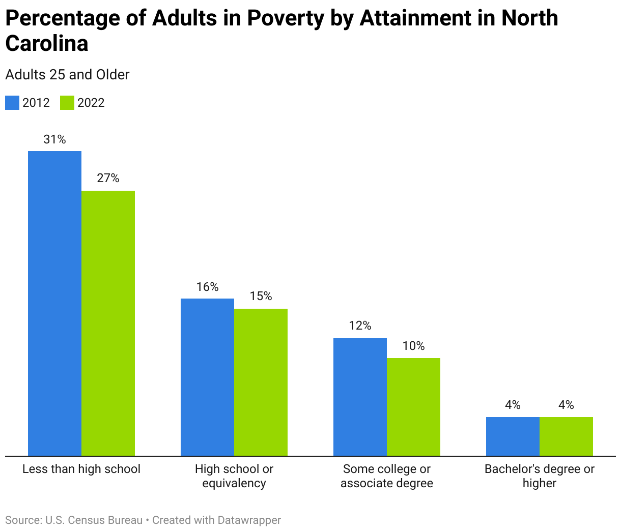 Percentage of Adults in Poverty by Attainment in North Carolina