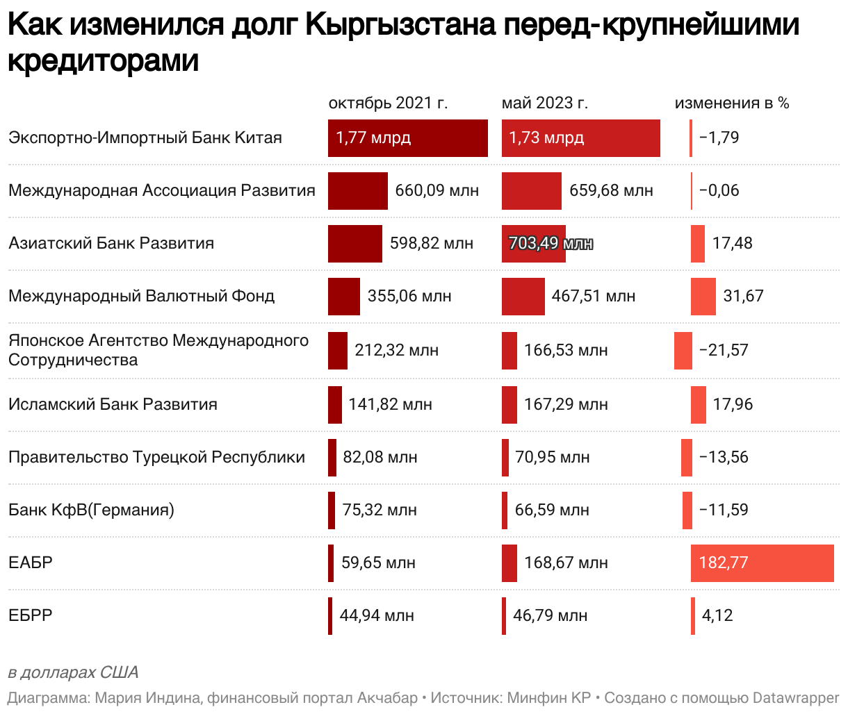 Как изменился долг Кыргызстана перед-крупнейшими кредиторами