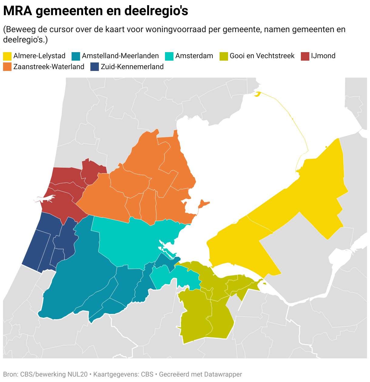 (Beweeg de cursor over de kaart voor woningvoorraad per gemeente, namen gemeenten en deelregio's.)