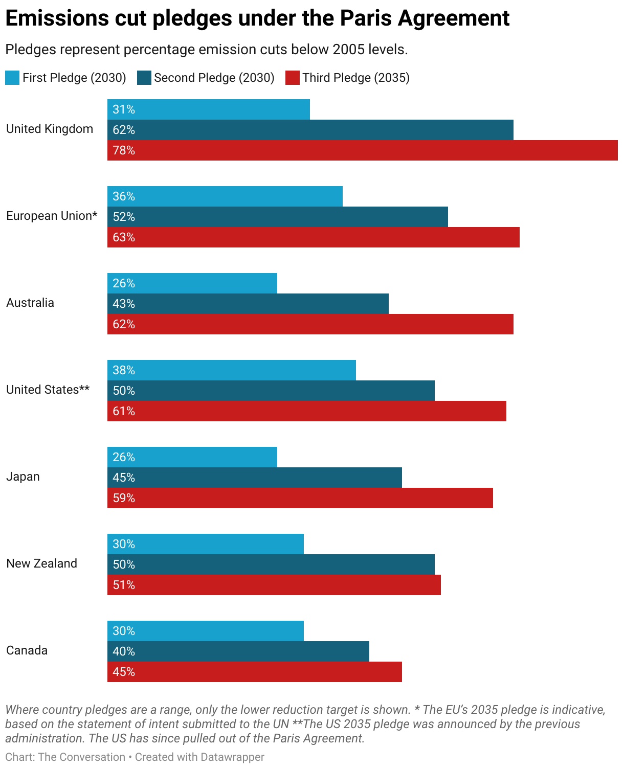 Pledges represent percentage emission cuts below 2005 levels.