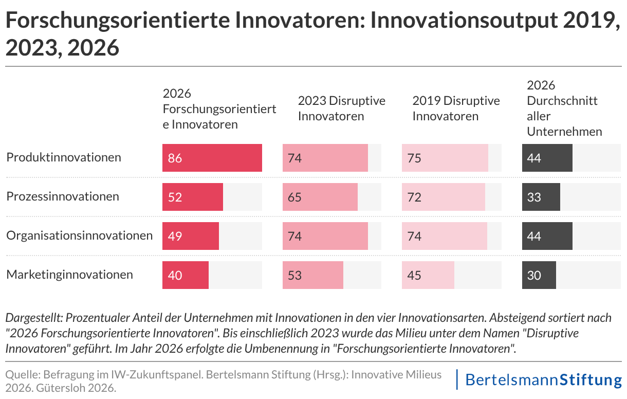 Forschungsorientierte Innovatoren: Innovationsoutput 2019, 2023, 2026