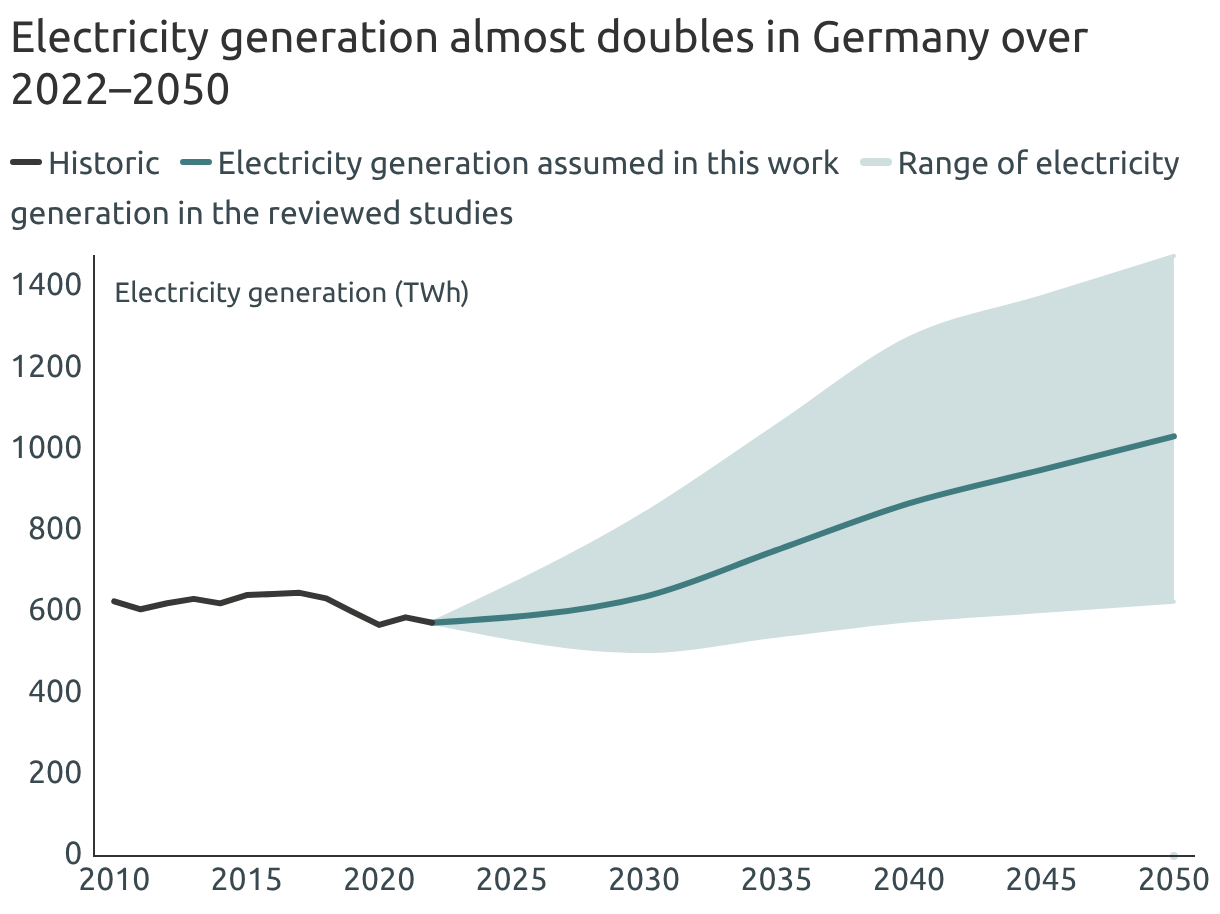 Electricity generation almost doubles in Germany over 2022–2050