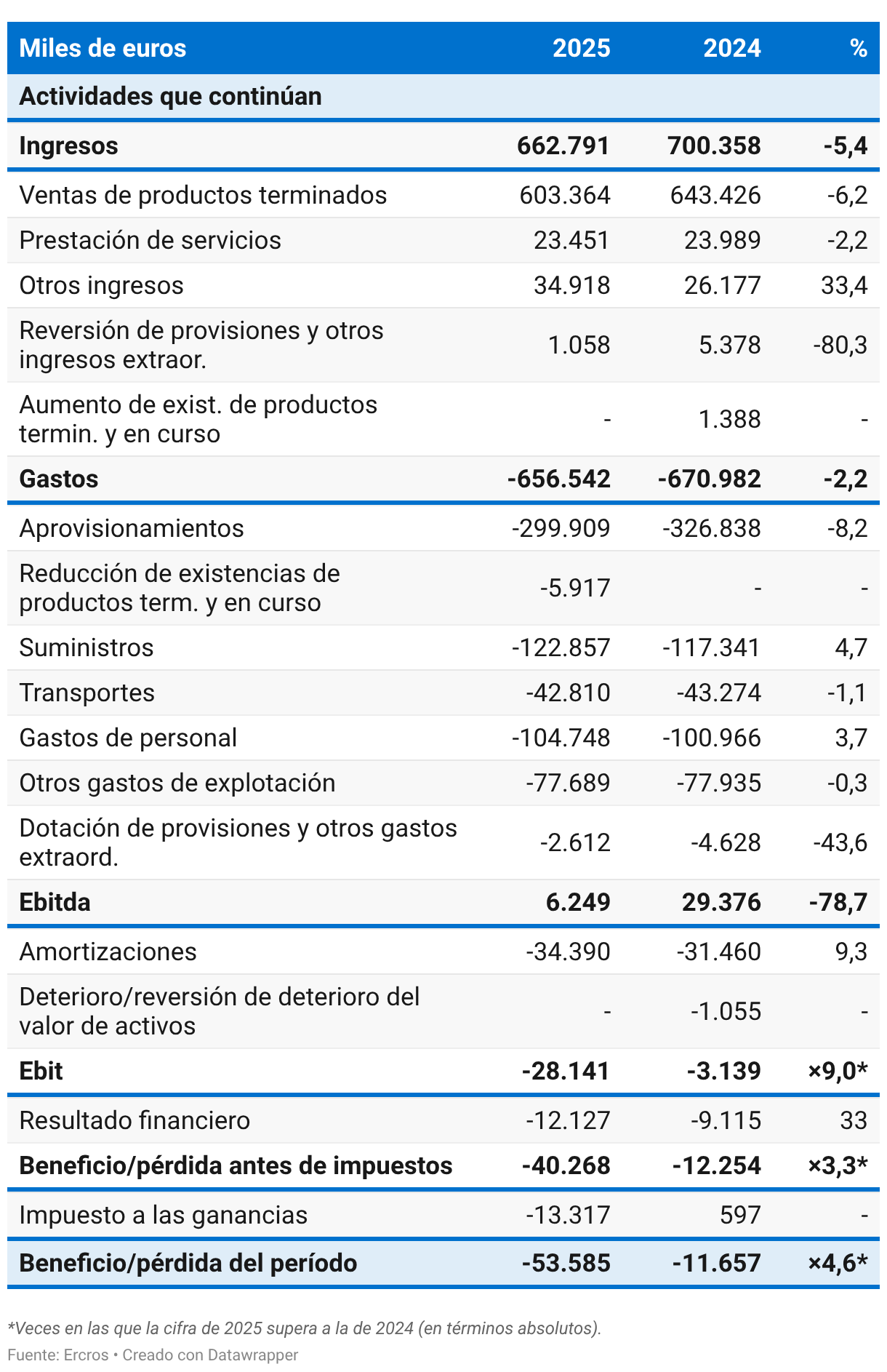 *Veces en las que la cifra de 2025 supera a la de 2024 (en términos absolutos).