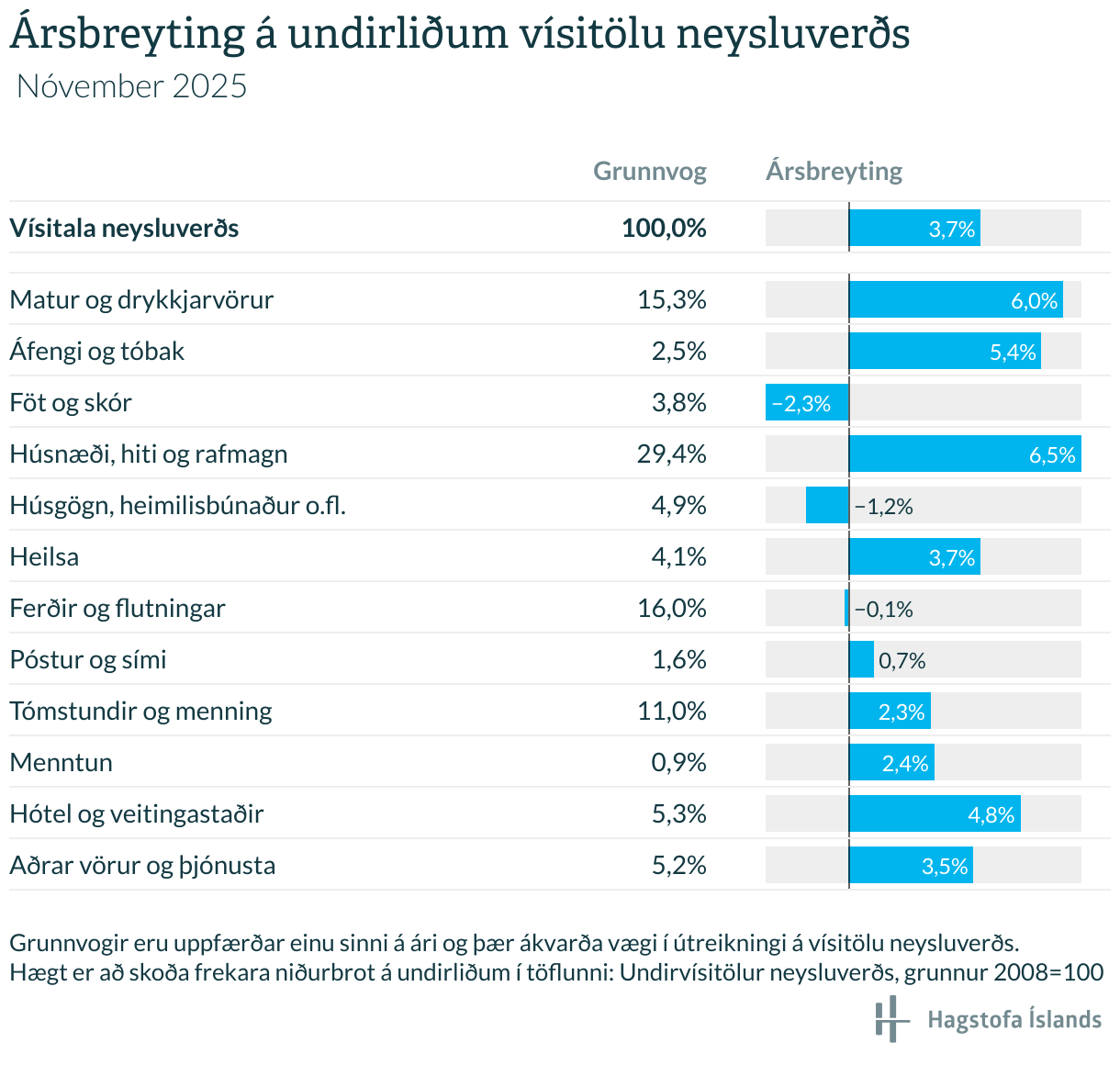 Ársbreyting á undirliðum vísitölu neysluverðs
