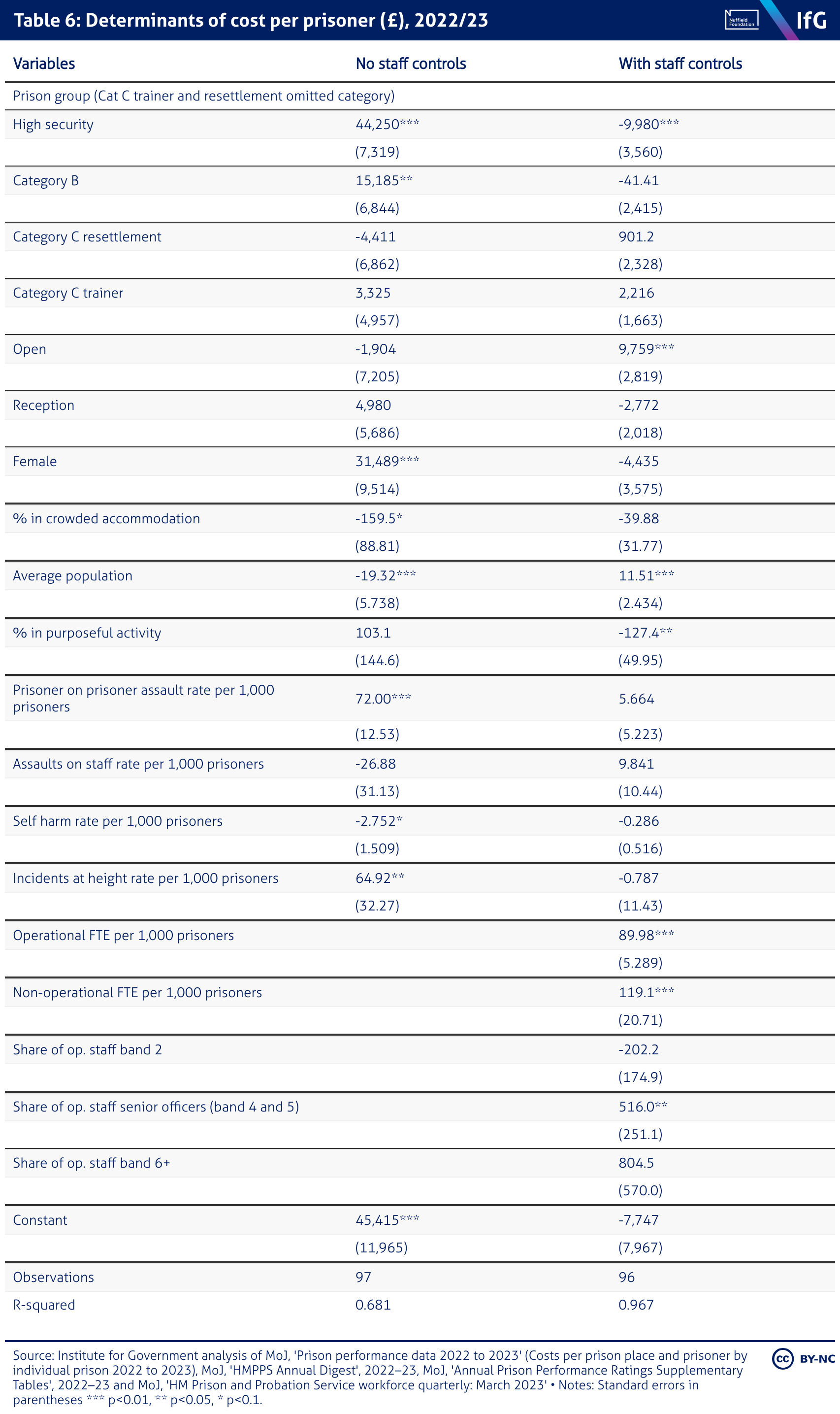 Table 6: Determinants of cost per prisoner (£), 2022/23