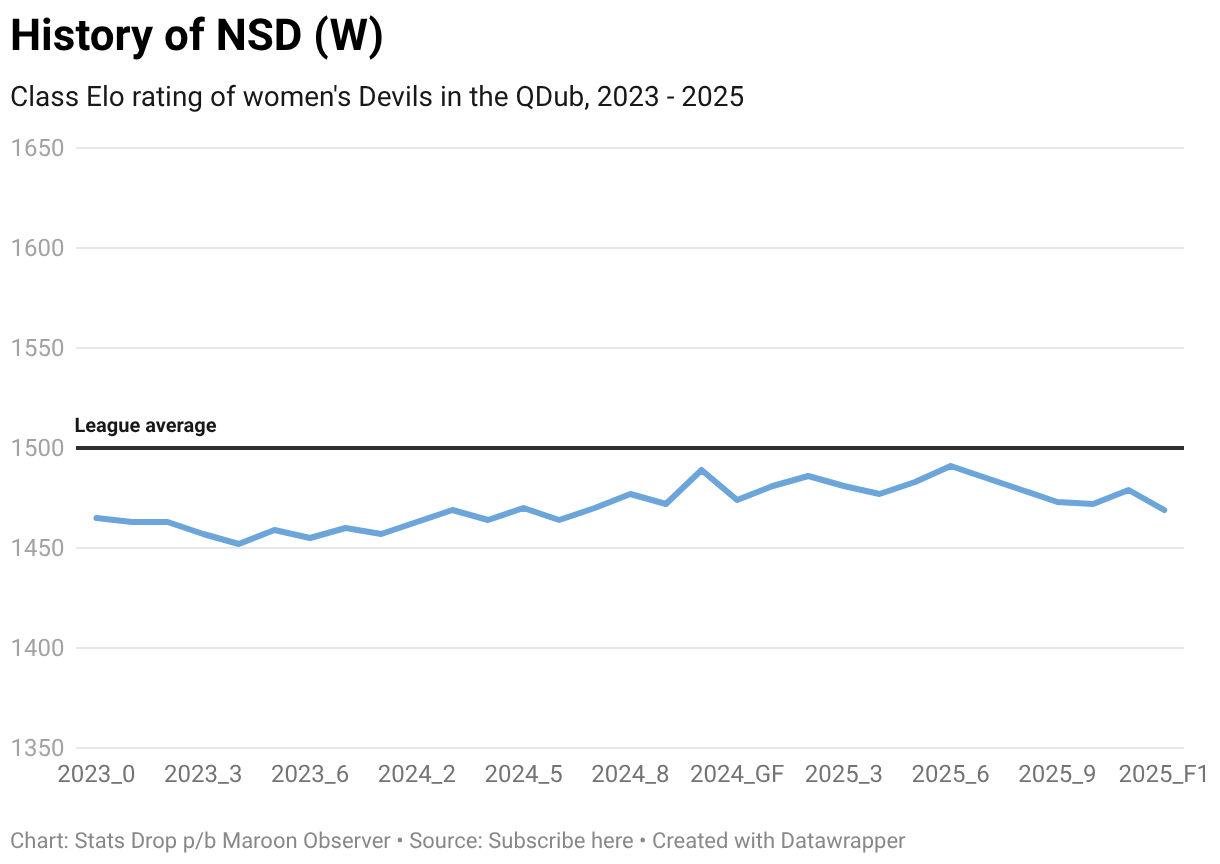 Class Elo rating of women's Devils in the QDub, 2023 - 2025