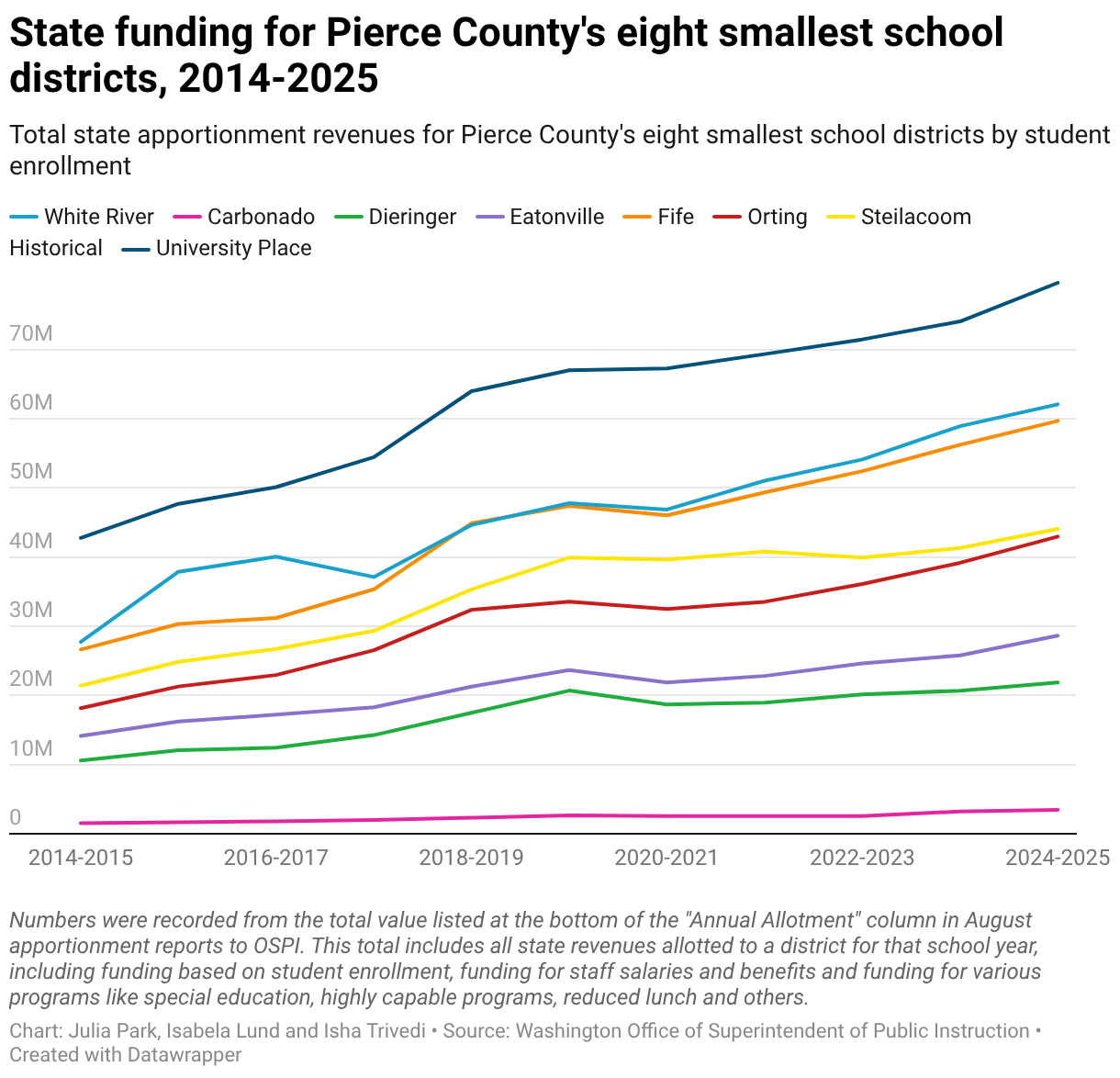State funding for Pierce County's eight smallest school districts, 2014-2025