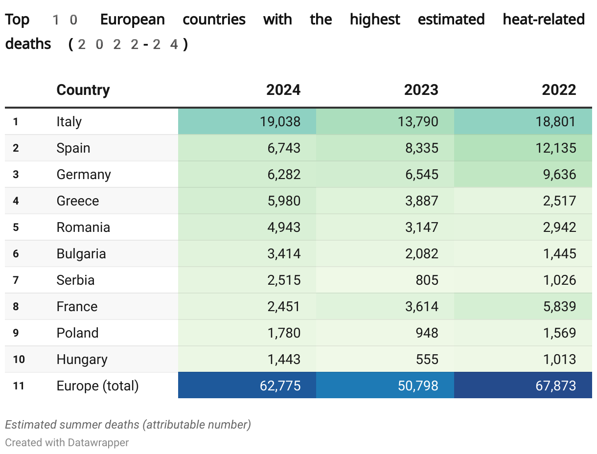 Top 10 European countries with the highest estimated heat-related deaths (2022-24)