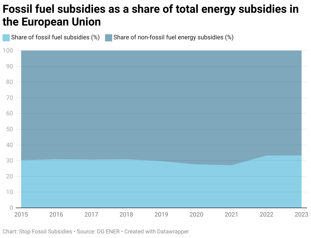 Fossil fuel subsidies as a share of total energy subsidies in the European Union