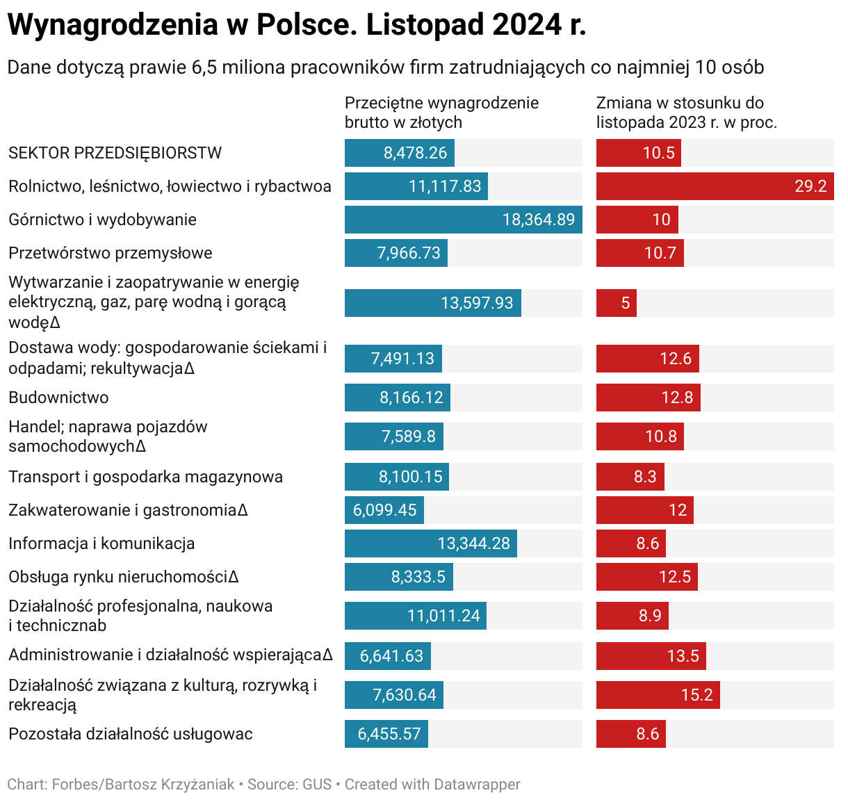 Dane dotyczą prawie 6,5 miliona pracowników firm zatrudniających co najmniej 10 osób