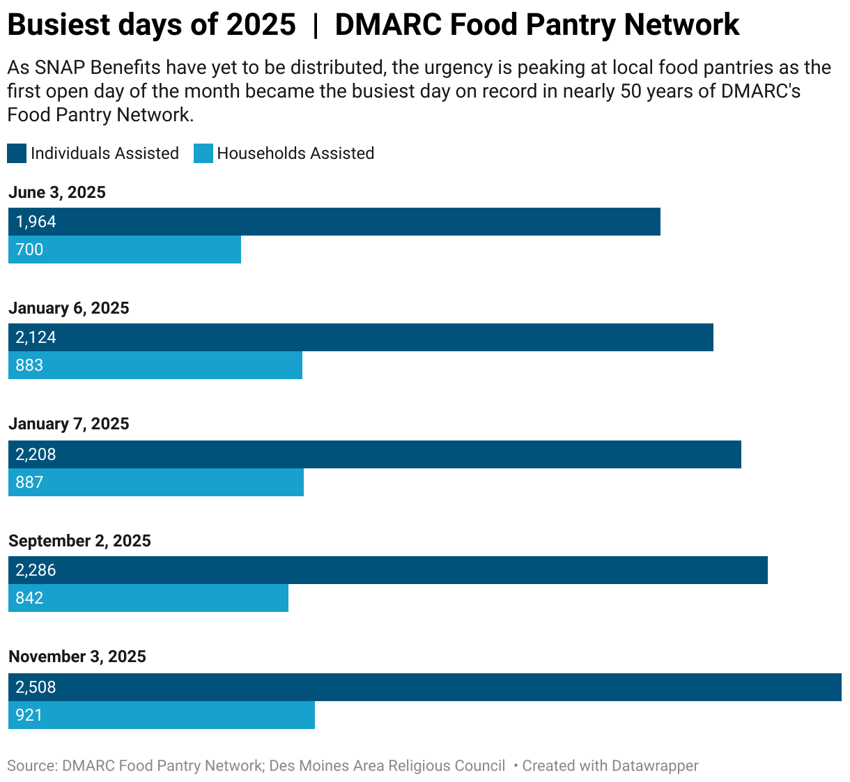 As SNAP Benefits have yet to be distributed, the urgency is peaking at local food pantries as the first open day of the month became the busiest day on record in nearly 50 years of DMARC's Food Pantry Network.