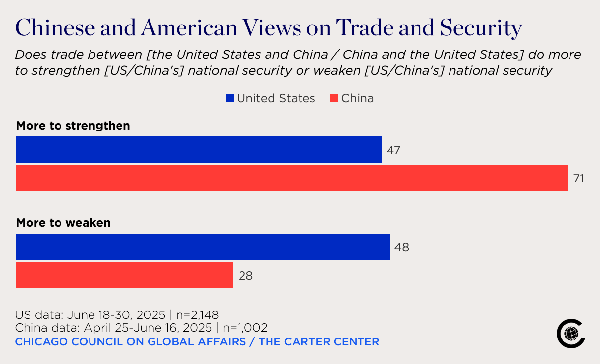 Does trade between [the United States and China / China and the United States] do more to strengthen [US/China's] national security or weaken [US/China's] national security