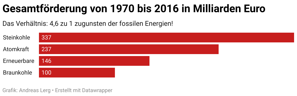 Das Verhältnis: 4,6 zu 1 zugunsten der fossilen Energien!