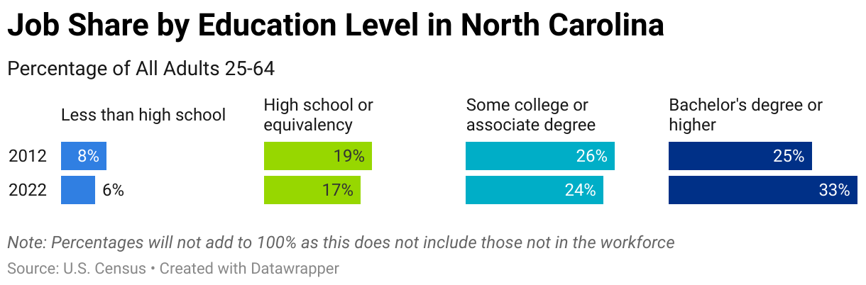 Job Share by Education Level in North Carolina