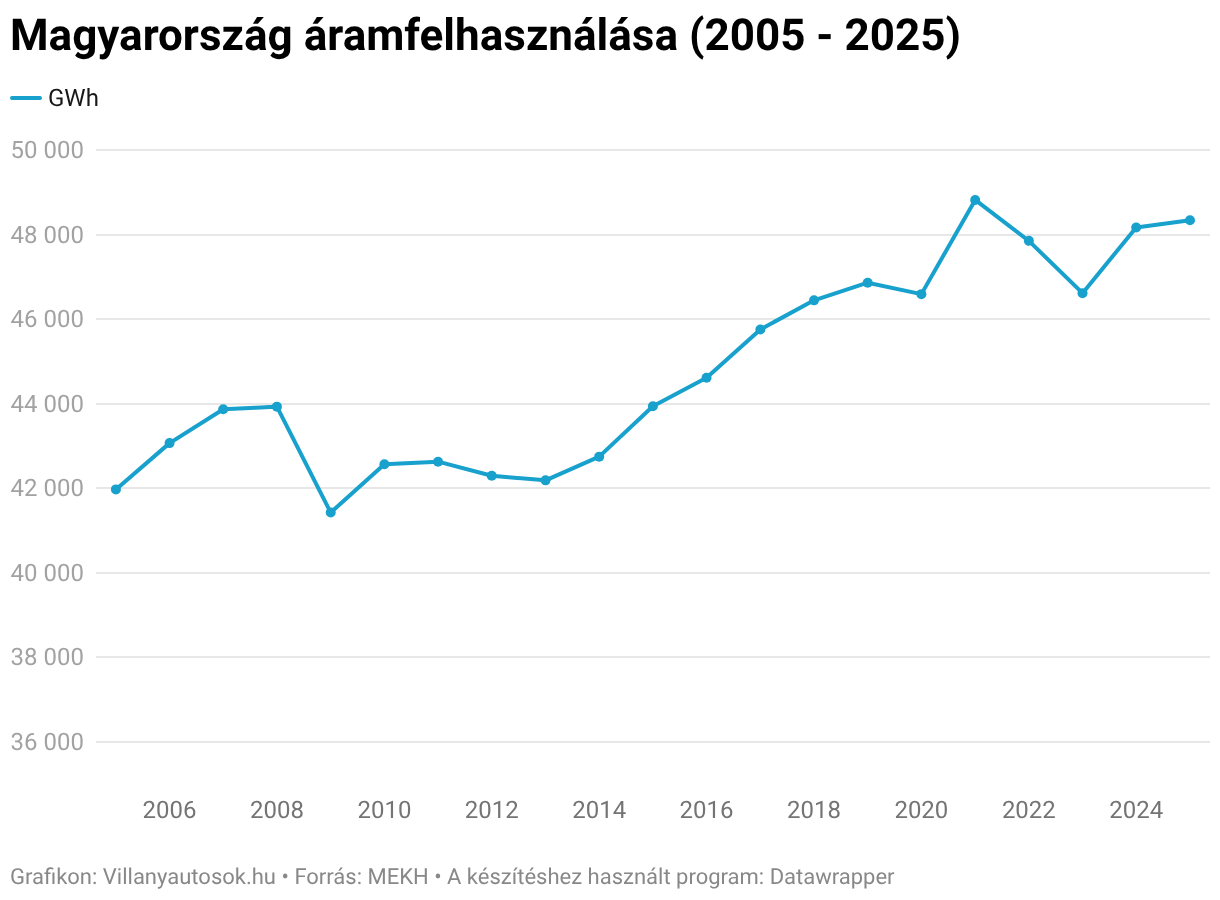 Magyarország áramfelhasználása (2005 - 2025)