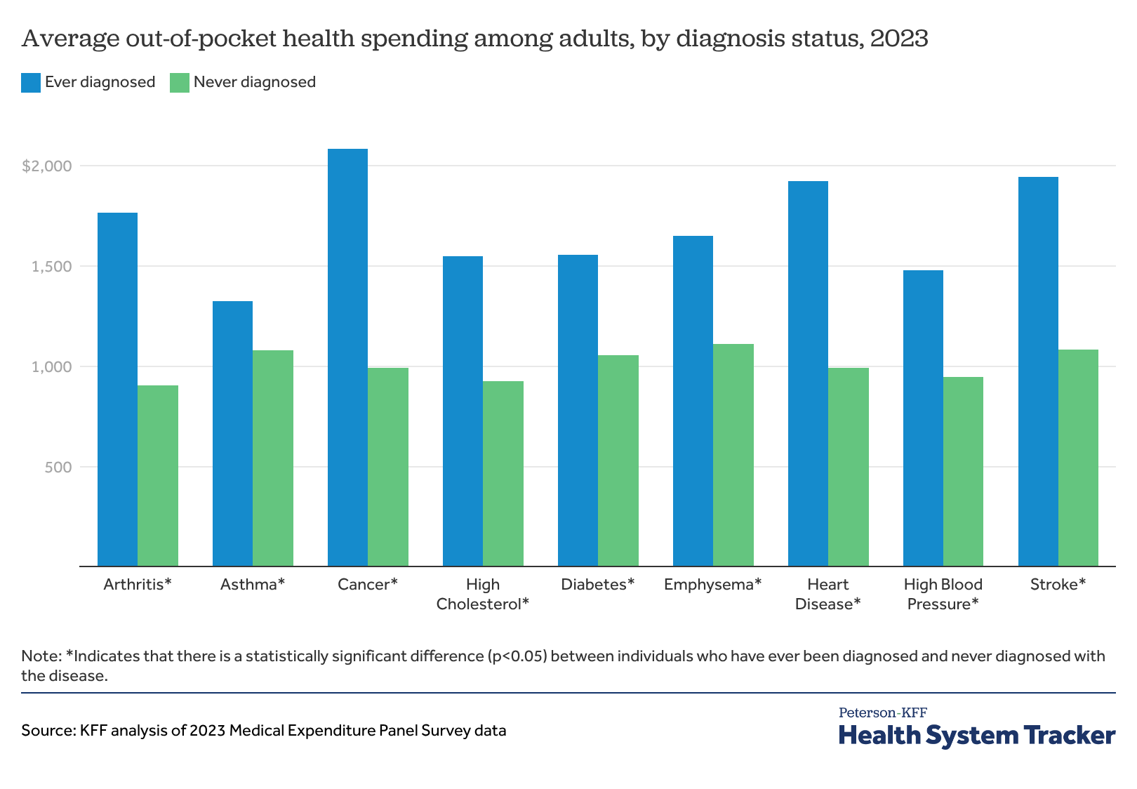 Average out-of-pocket health spending among adults, by diagnosis status, 2023