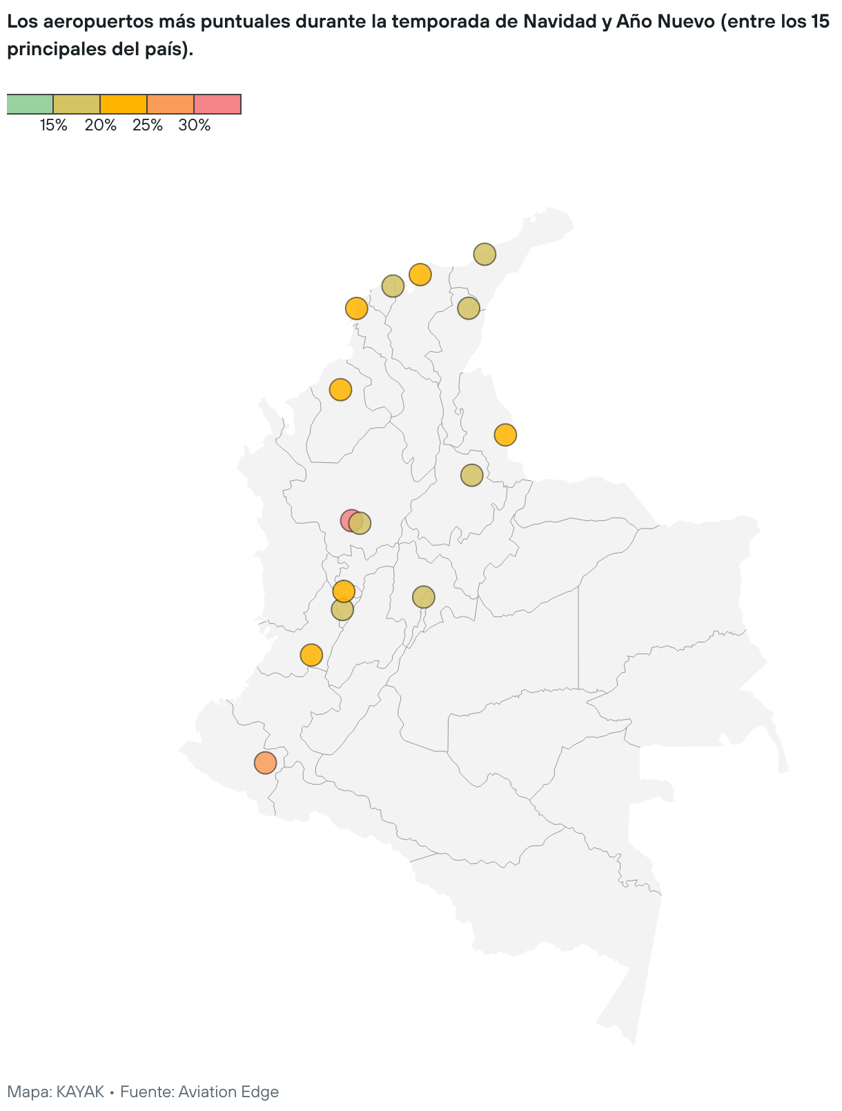 Los aeropuertos más puntuales durante la temporada de Navidad y Año Nuevo (entre los 15 principales del país).
