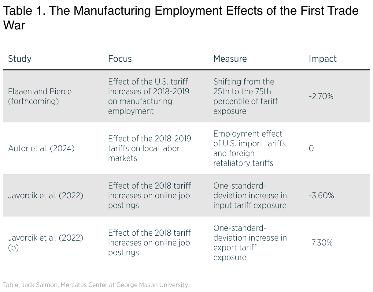 Table 1. The Manufacturing Employment Effects of the First Trade War