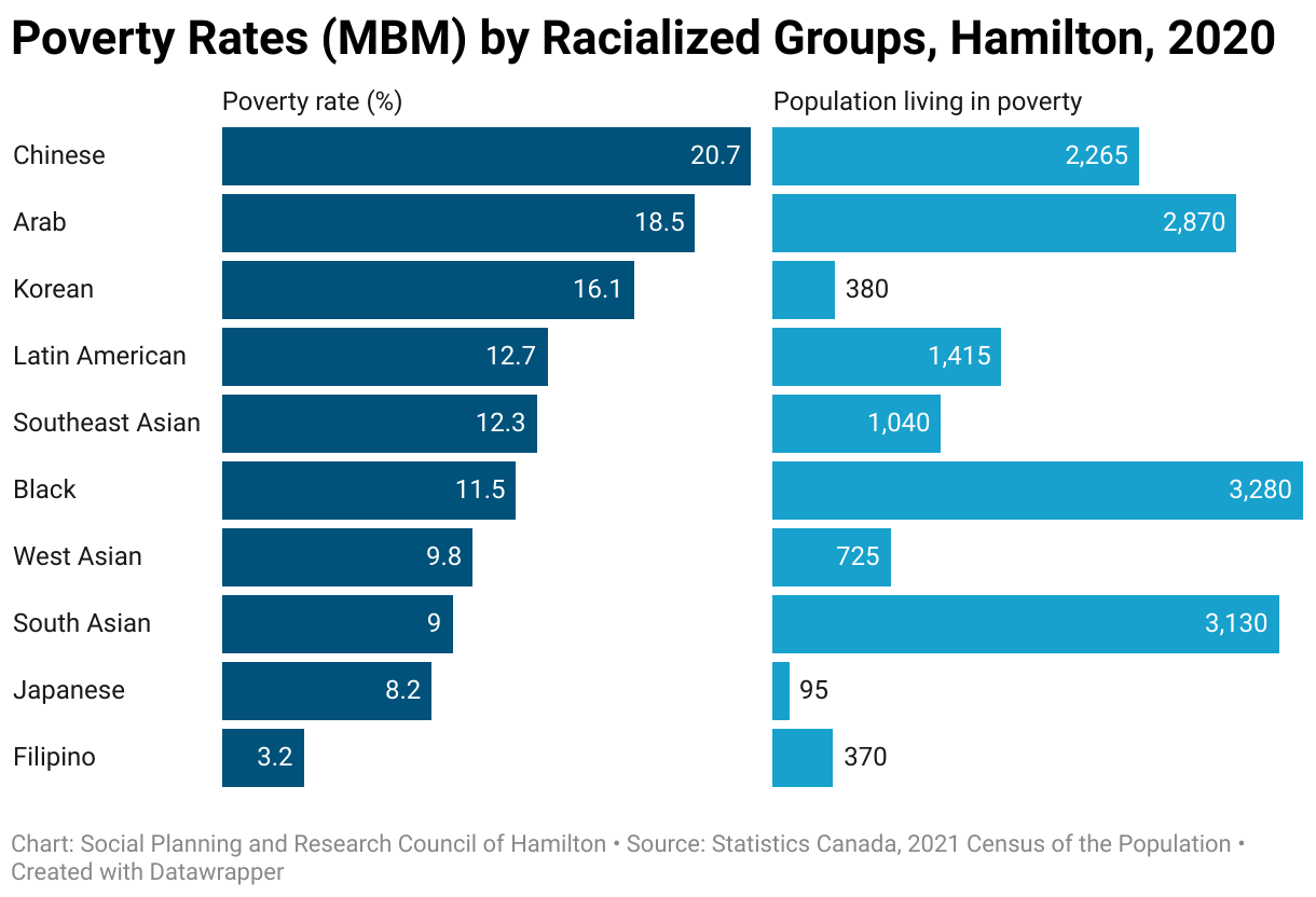 Poverty Rates (MBM) by Racialized Groups, Hamilton, 2020
