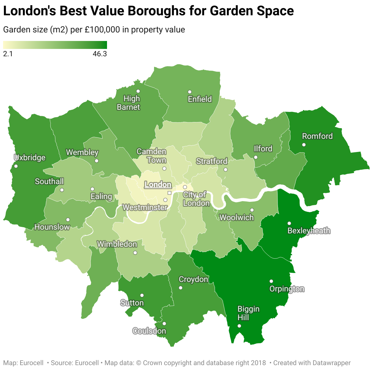 Garden size (m2) per £100,000 in property value