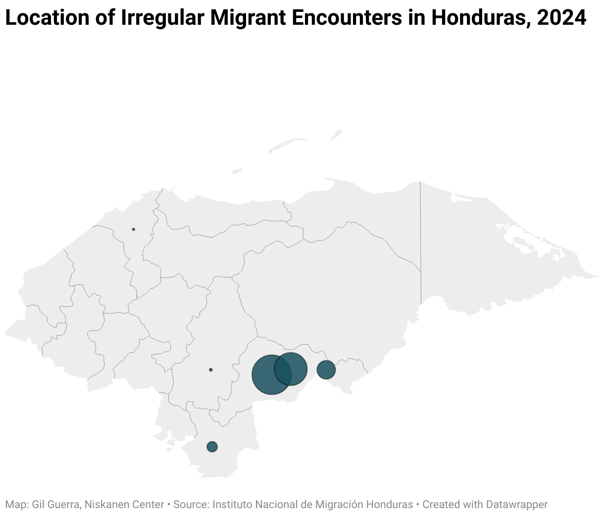 Location of Irregular Migrant Encounters in Honduras, 2024