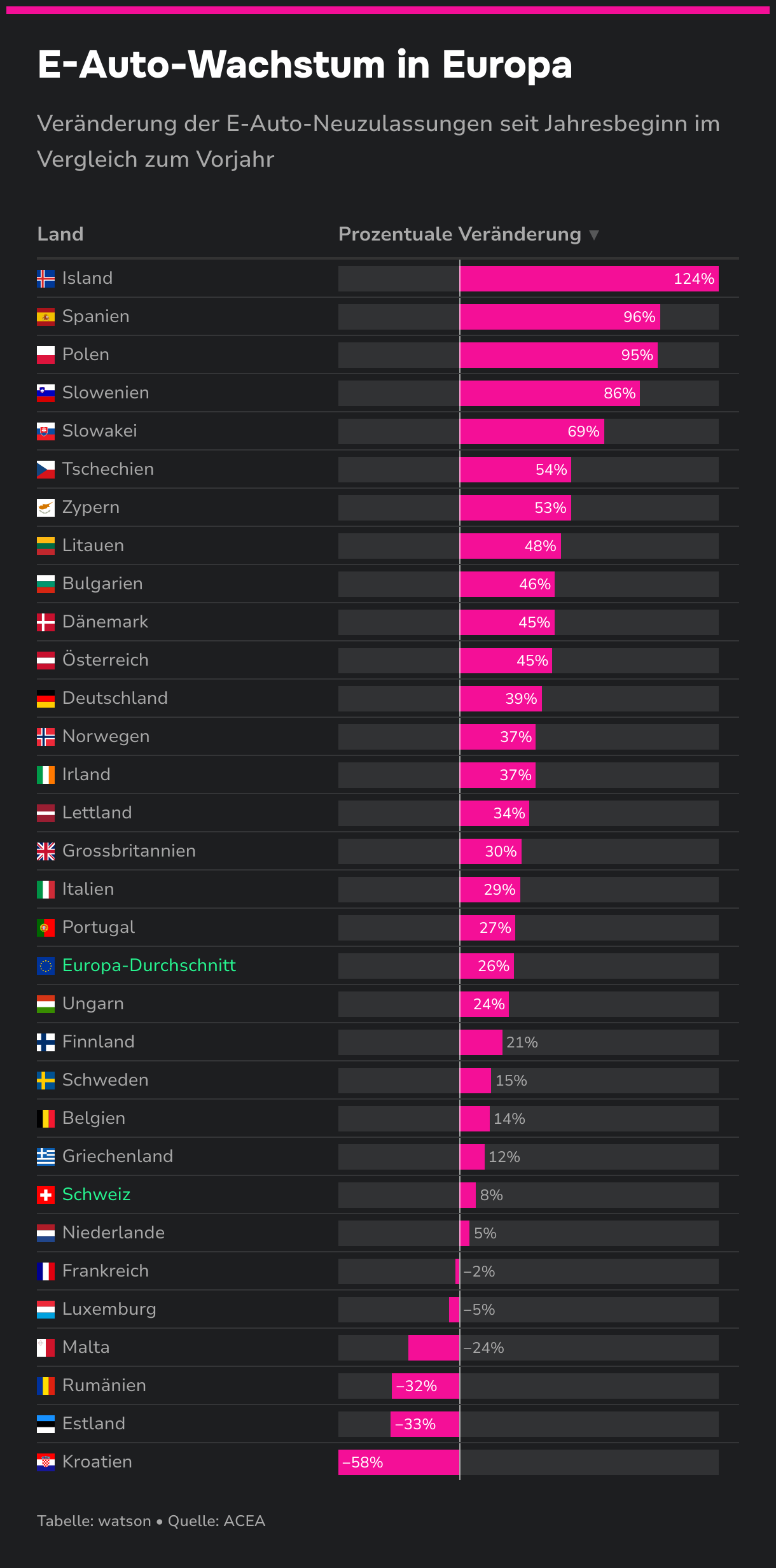 Veränderung der E-Auto-Neuzulassungen seit Jahresbeginn im Vergleich zum Vorjahr
