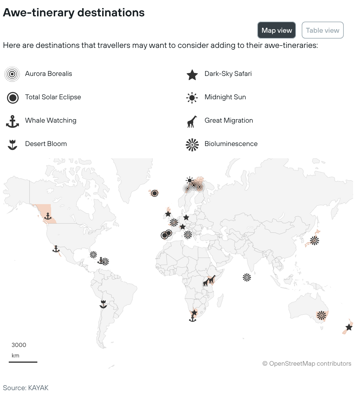 Here are destinations that travellers may want to consider adding to their awe-tineraries: Map view Table view