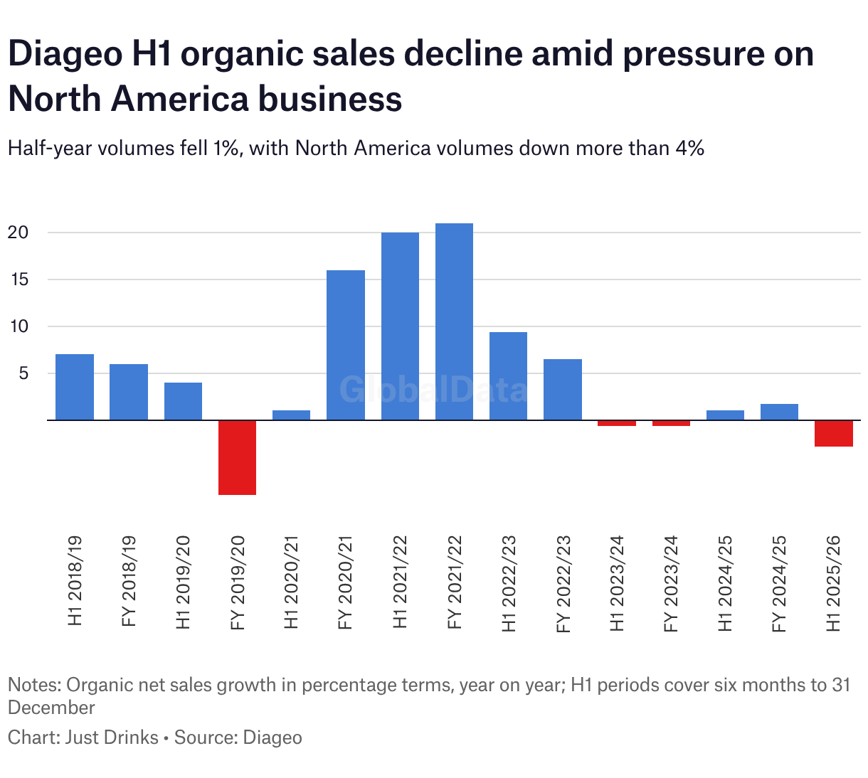 Half-year volumes fell 1%, with North America volumes down more than 4%
