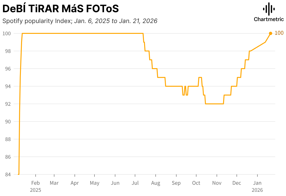 Spotify popularity Index; Jan. 6, 2025 to Jan. 21, 2026