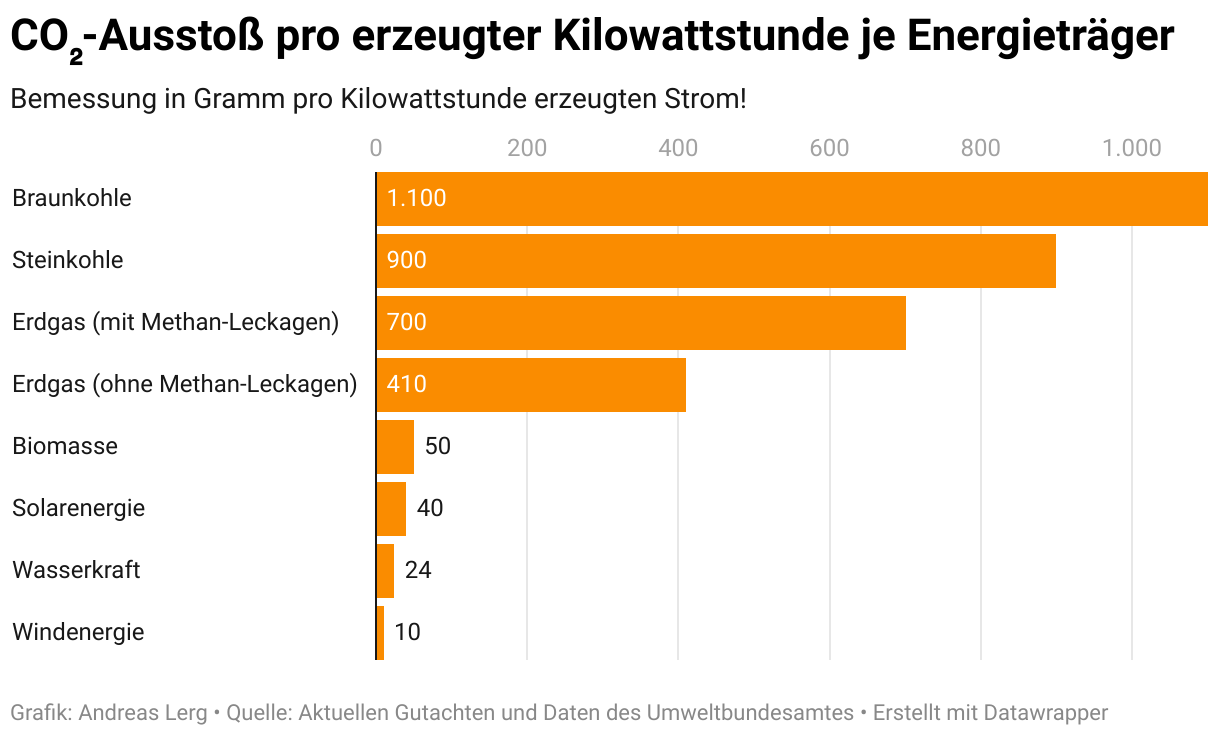 Bemessung in Gramm pro Kilowattstunde erzeugten Strom!