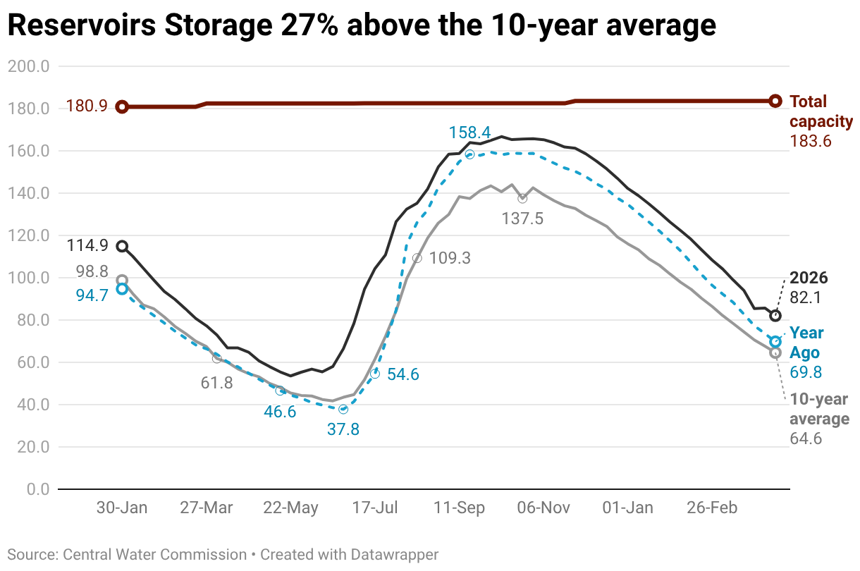 Reservoirs Storage 27% above the 10-year average