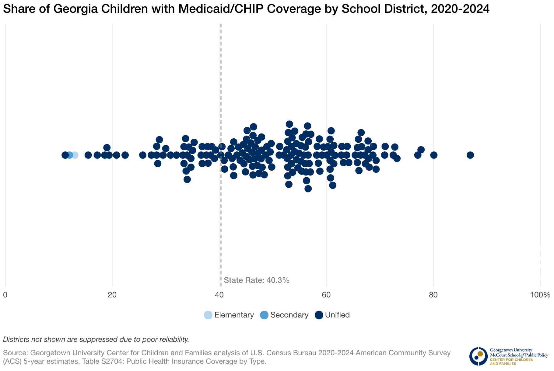 Share of Georgia Children with Medicaid/CHIP Coverage by School District, 2020-2024