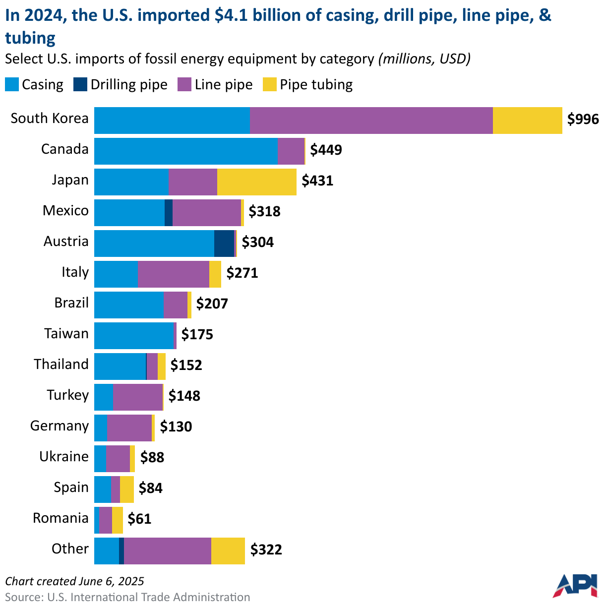 Select U.S. imports of fossil energy equipment by category (millions, USD)